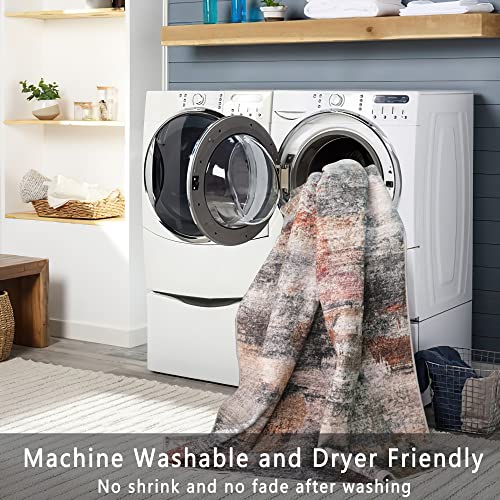 vivorug Washable Rug, Ultra Soft Area Rug 6x9, Non Slip Abstract Rug Foldable, Stain Resistant Rugs for Living Room Bedroom, Modern Fuzzy Rug (Gray/Rust, 6'x9')